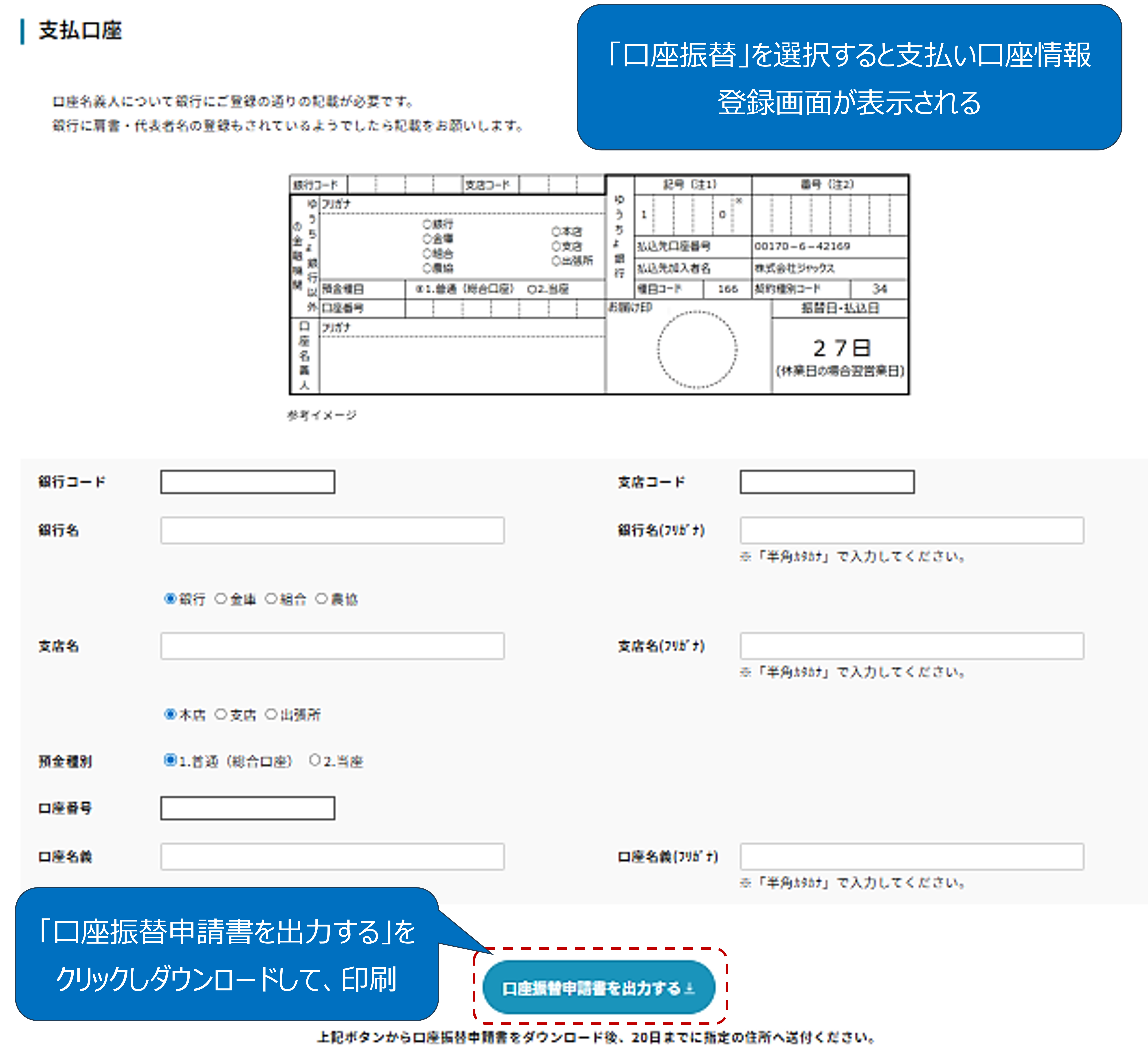 ・「口座振替」を選択した場合